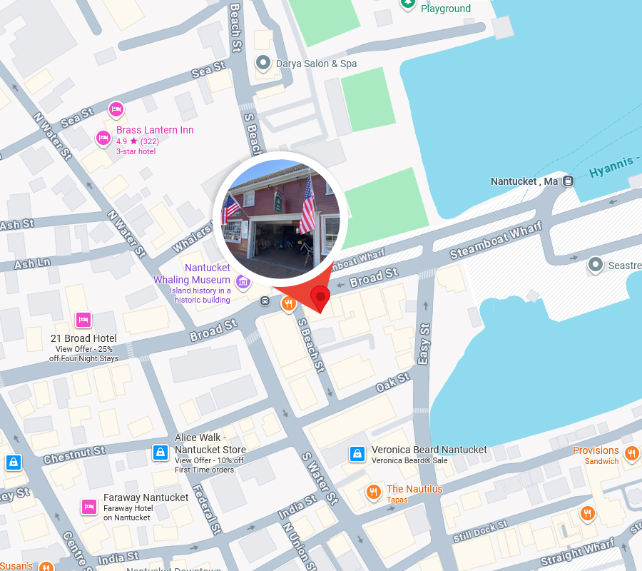 Stop by today for bike or scooter rentals on Nantucket Island during your vacation. We’ll outfit you with the perfect equipment so you can enjoy a long, beautiful and fun excursion around our stunning island.