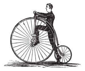 Of course, the penny-farthing’s design did present some distinct challenges as well. Just climbing onto one without losing your balance was easier said than done. Penny-farthings were also notorious for sending people flying over the front of their handlebars. Penny-farthing accidents were fairly common, and before too long modern bikes with gears and chains surpassed them in popularity. But despite the fact that their practical use was limited to a few decades, penny-farthings have remained recognizable icons of cycling history for more than a century.